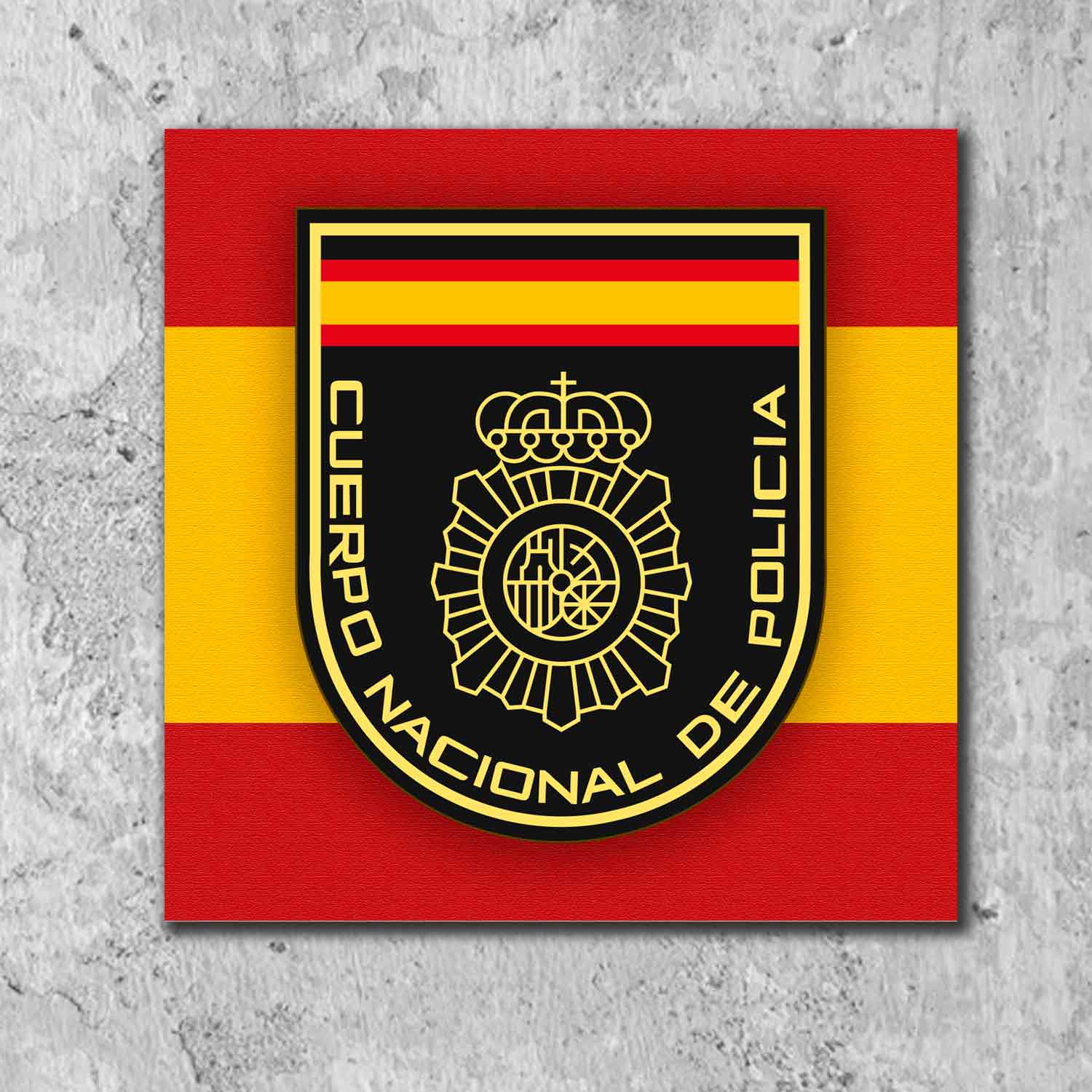 El azulejo escudo CNP es una pieza decorativa exclusiva diseñada para miembros de la Policía Nacional, opositores y amantes de los artículos institucionales. Este azulejo en cerámica reproduce con gran detalle el escudo del Cuerpo Nacional de Policía sobre fondo con los colores de la bandera de España, creando una composición elegante, sobria y con gran fuerza visual.