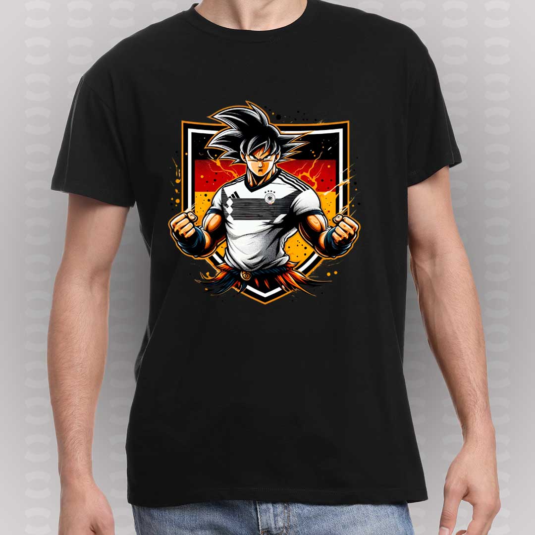 Su diseño destaca a Goku, el legendario Saiyajin, vistiendo la camiseta de tu selección de fútbol, lo que convierte esta prenda en una combinación perfecta entre el universo anime y la pasión deportiva. Una elección ideal para lucir en partidos, eventos frikis, reuniones con amigos o simplemente en tu día a día con un estilo único.