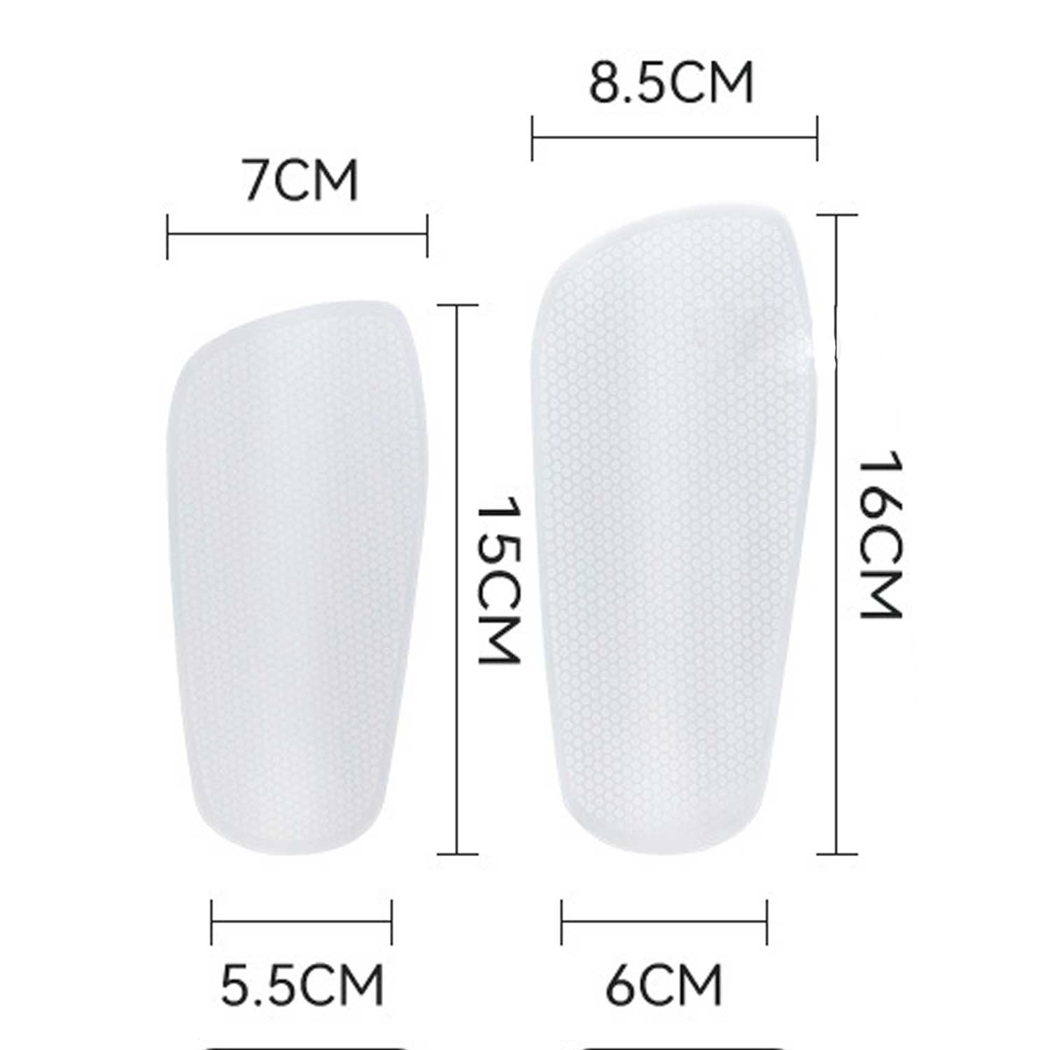 Estas espinilleras cuentan con una superficie blanca especial para sublimación, con un acabado tipo panal de abeja de grano fino, similar al modelo original. Este micro relieve no solo aporta un diseño moderno y elegante, sino que además mejora la fijación del color durante el proceso de sublimado, logrando resultados más uniformes y sin imperfecciones.